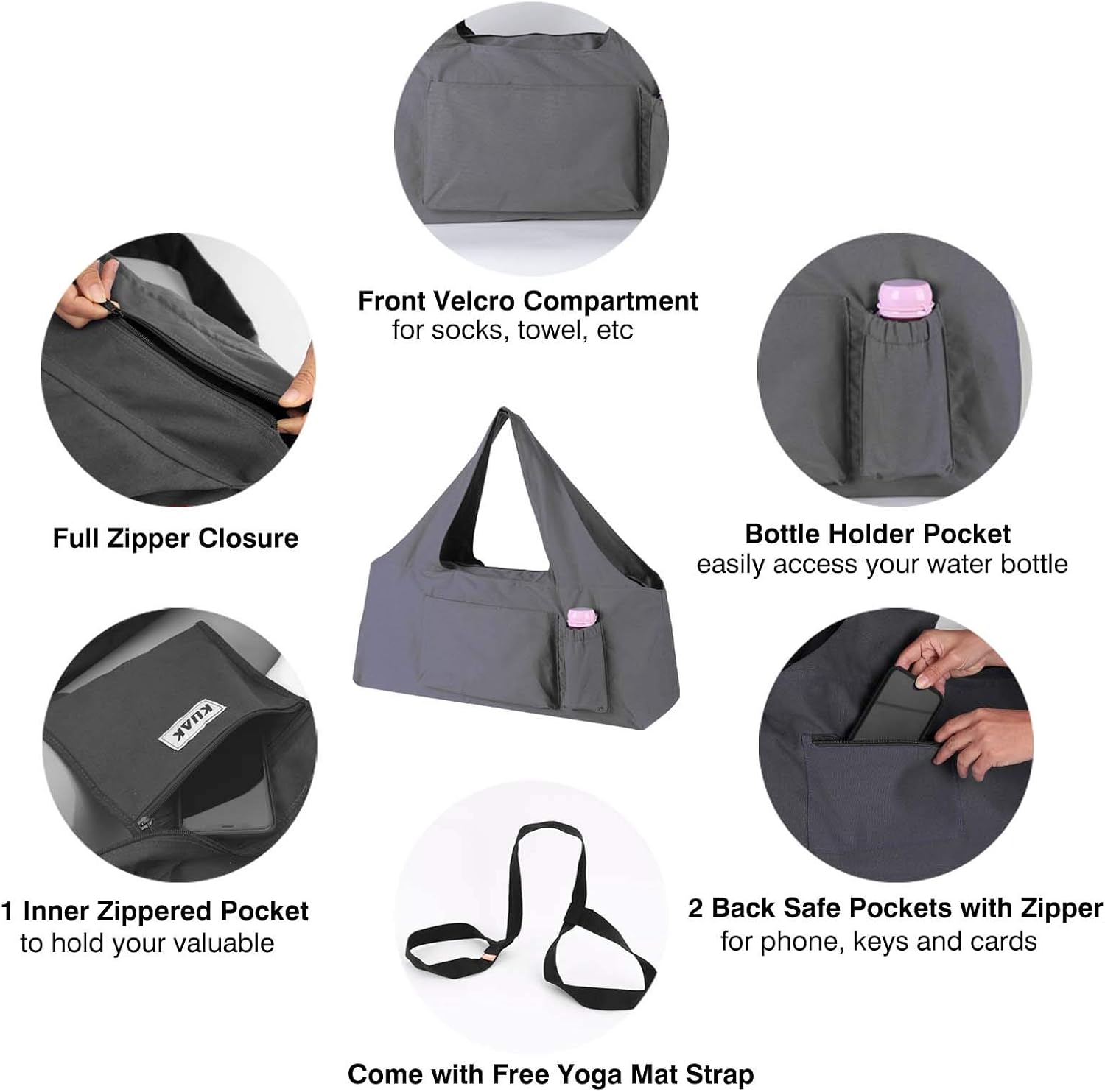 - 【Multi-purpose Tote Bag】Double wide shoulder straps prevent from tiring your shoulders. This yoga mat carrier easily doubles as a gym bag, beach bag, travel bag, carry on bag, overnight bag and more