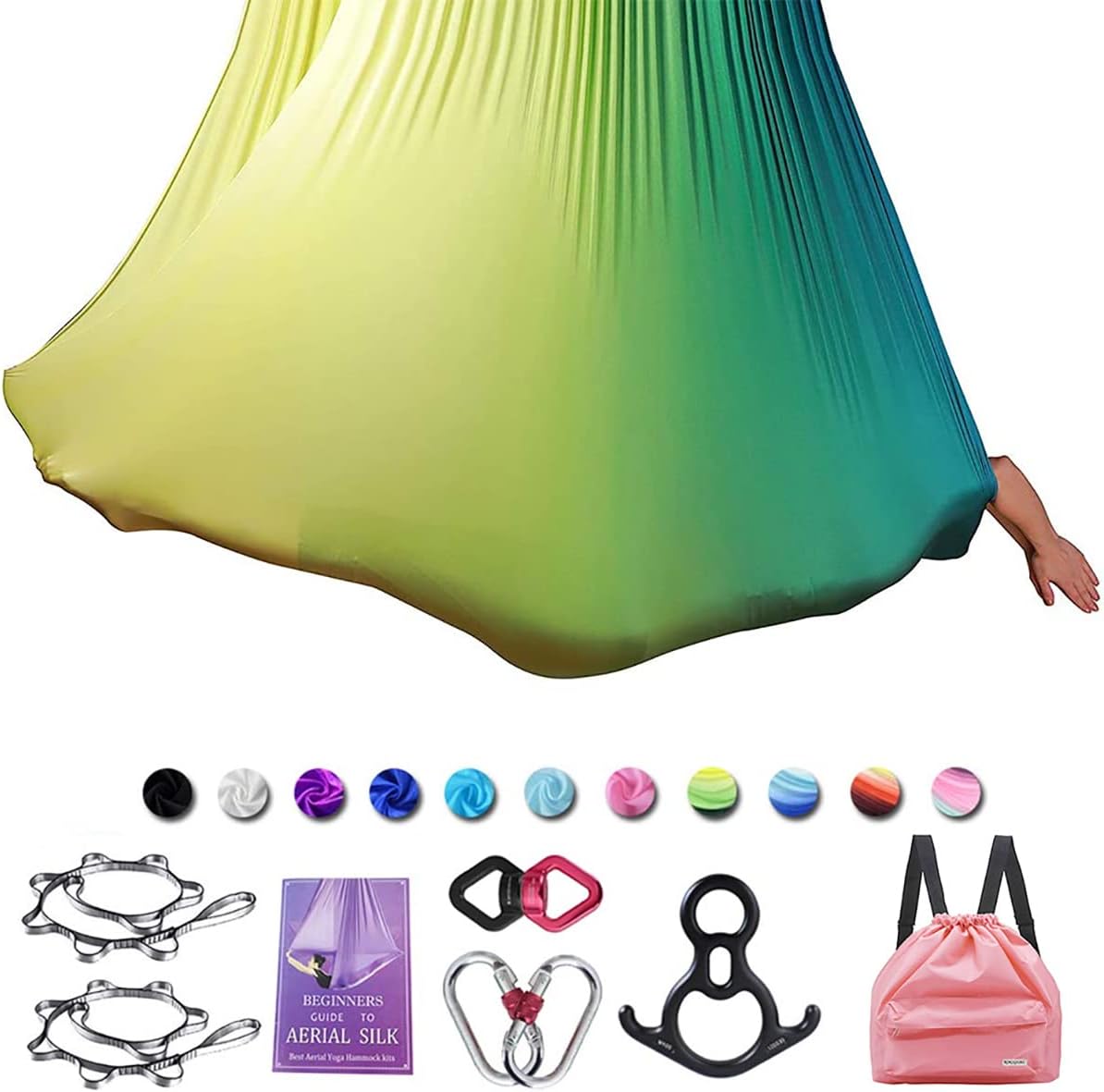 - Easy to Carry – Our yoga swing for adults include Knot tying guide step by step, aerial yoga beginer pose guide.The Included Carry Bag Makes It Easy To Take yoga hammock With You And Do Any aerial yoga Away From yoga studio Or Your Home or Outdoor.